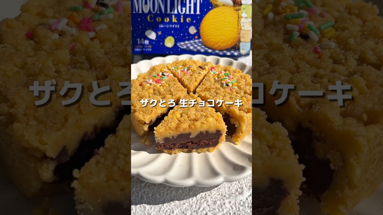 【ザクとろ生チョコケーキ】オーブンと生クリーム不要のASMRケーキ🎂外ザクザク中トロける生チョコがたまらん🤤🍫#アレンジ #アレンジやさん #簡単 #おやつ #生チョコ #オーブンなし
