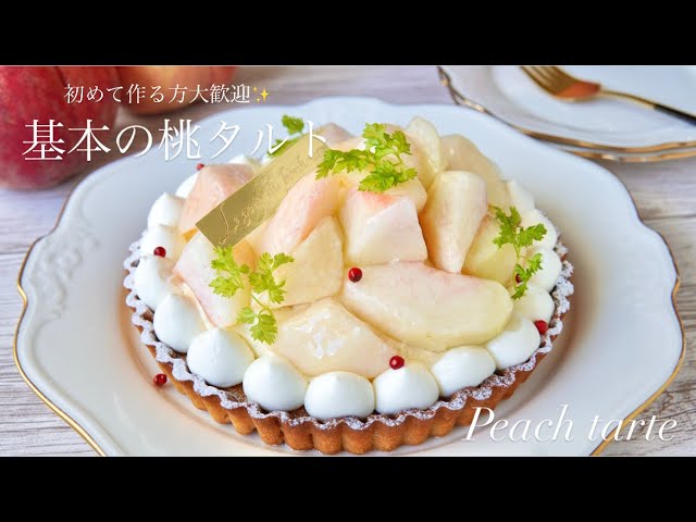 〈Making the tart dough〉① Bring the butter to room temperature, add powdered sugar, and cream together.② Add the beaten whole egg and mix well. Sift in cake flour, almond powder, and salt, then fold together gently with a rubber spatula.③ Gather into a ball, wrap in plastic wrap, and let rest in the refrigerator for at least 1 hour.④ Roll out to 3 mm thickness and line a tart mold, then prick with a fork.*If you remove the base of the tart mold and line it with Silpat before baking, pricking is unnecessary and the tart will come out evenly crisp.→ If you don’t have a Silpat, keep the base attached and prick the tart dough through the bottom.⑤ Bake in a preheated oven at 180°C for 15–20 minutes. Once slightly cooled, remove from the mold.〈Making the almond cream (d’amande)〉① Mix room-temperature butter with powdered sugar until pale. Gradually add beaten eggs, mixing well.② Add almond powder and mix evenly. Pipe into the tart shell and smooth the surface.③ Bake the tart in a preheated oven at 170°C for about 30–35 minutes. Let it cool after baking.〈Making the custard cream〉① Mix egg yolks and sugar, then add cake flour and cornstarch and mix.② Heat milk with vanilla bean paste just until it is about to boil.③ Gradually add the heated milk to the egg mixture, mixing well.④ Return to the pan and cook over medium heat while constantly stirring until custard thickens.⑤ Add butter and melt, then spread in a tray, cover with plastic wrap in direct contact, and rapidly cool using ice water or a cold pack. Once cooled, loosen the custard.〈Cream for finishing〉① Whip 60 g of heavy cream to soft peaks and mix with the custard (Diplomat cream).② Whip 100 g of heavy cream with sugar and liqueur to 7–8 minutes of whipped peaks.〈Assembly〉① Pipe Diplomat cream onto the tart base. Cut peaches to your desired size and brush with lemon juice to prevent discoloration.② Brush with napage for a glossy finish. Pipe whipped cream around the edges and decorate with chervil or pink pepper.③ Finish by dusting with powdered sugar that doesn’t clump.
