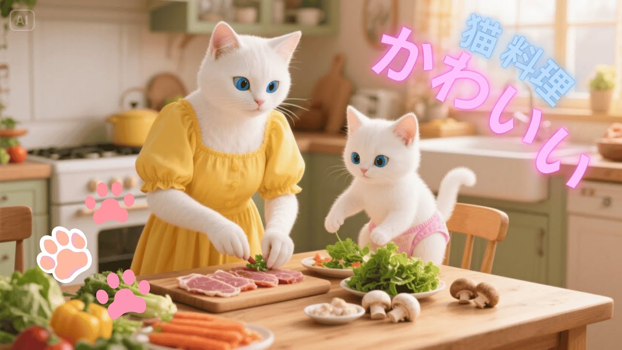 【癒しの和食】ママ猫のカジキのパッションフルーツソース&カレー|可愛い親子の料理時間🍝🥗🐾