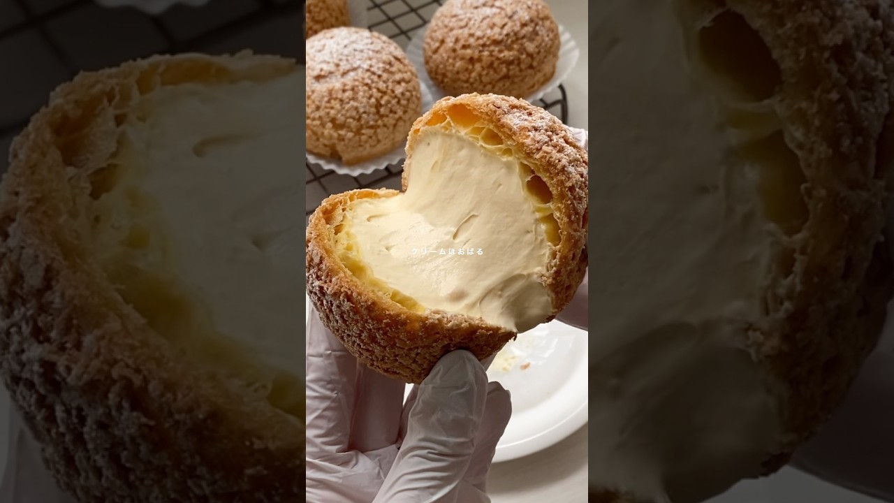 まんまる可愛いクッキーシュー👩🏻‍🍳♡シュークリームの写真ばっかになりました🫶🏻#シュークリーム#クッキーシュー#お菓子作り#手作りお菓子 #youtubeshorts