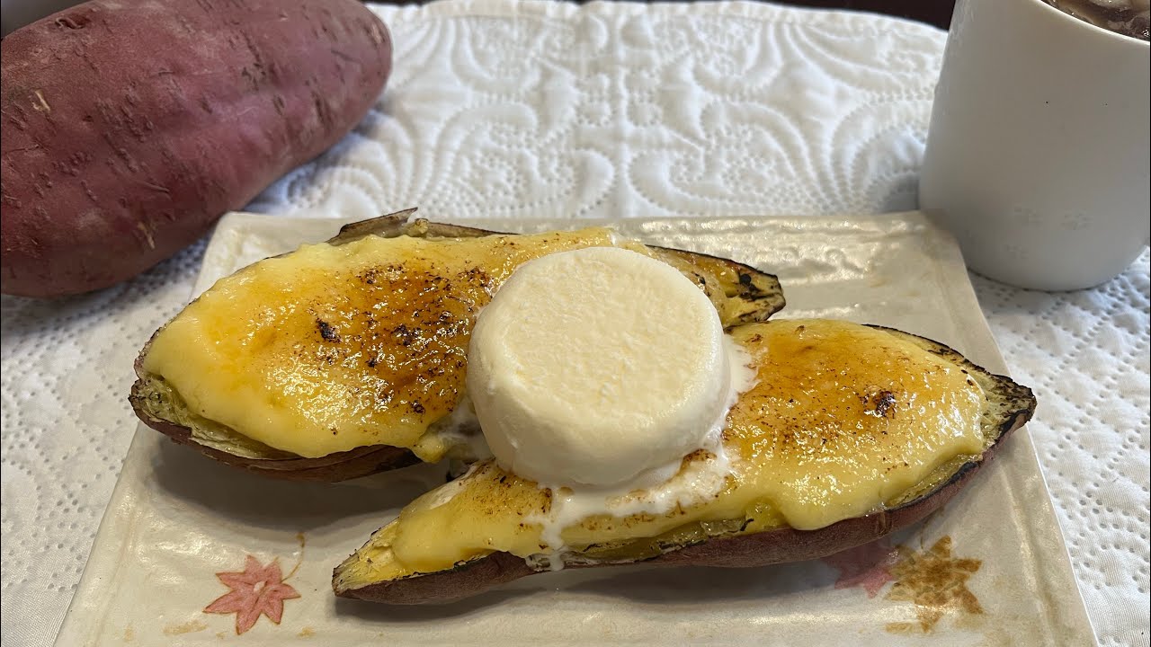 レンジで簡単‼️さつまいものカスタードブリュレ/焼き芋もカスタードもレンジで簡単に作れます♡